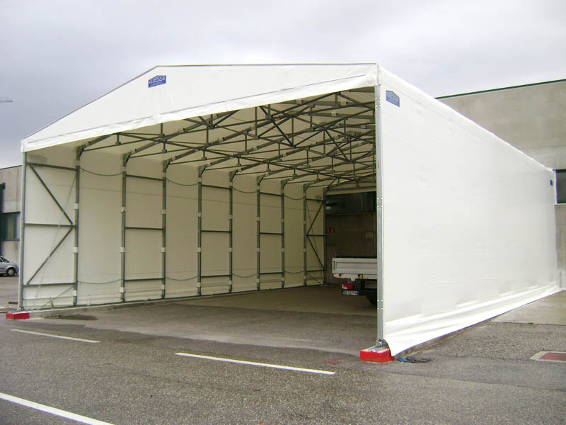 Questi tunnel vengono appoggiati ad un fabbricato esistente, spesso in corrispondenza di un portone e sono utili per le operazioni di carico-scarico merci.
