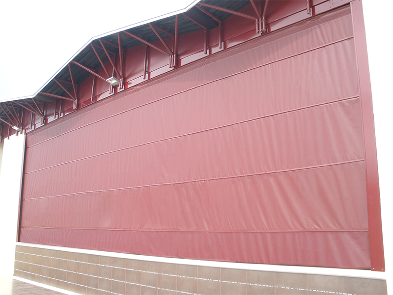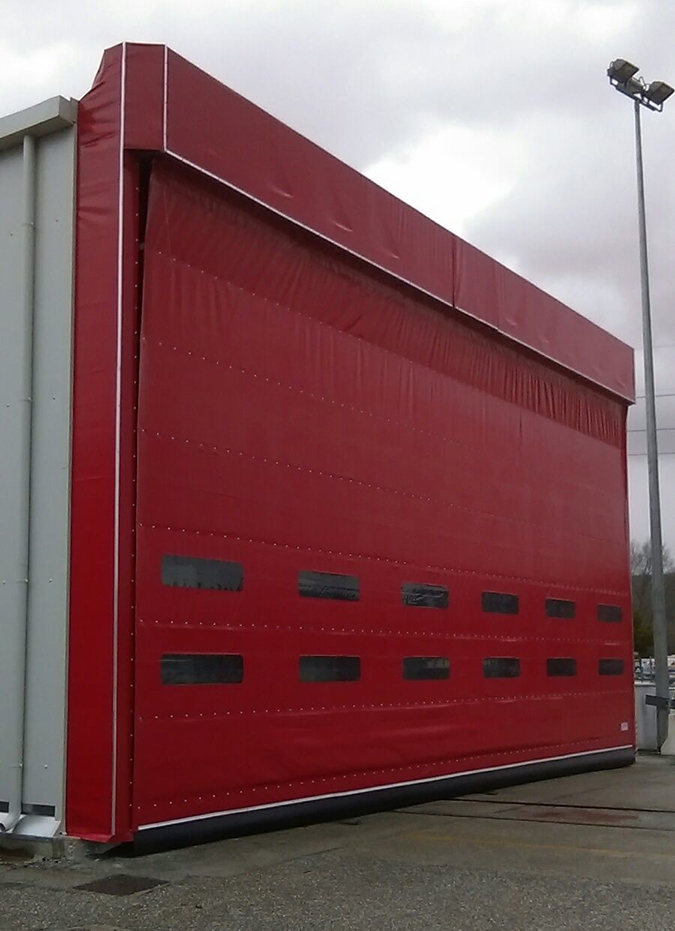 Il telo delle porte rapide è realizzato in tessuto Poliestere bispalmato PVC autoestinguente, classe 2 (o a richiesta classe 1).